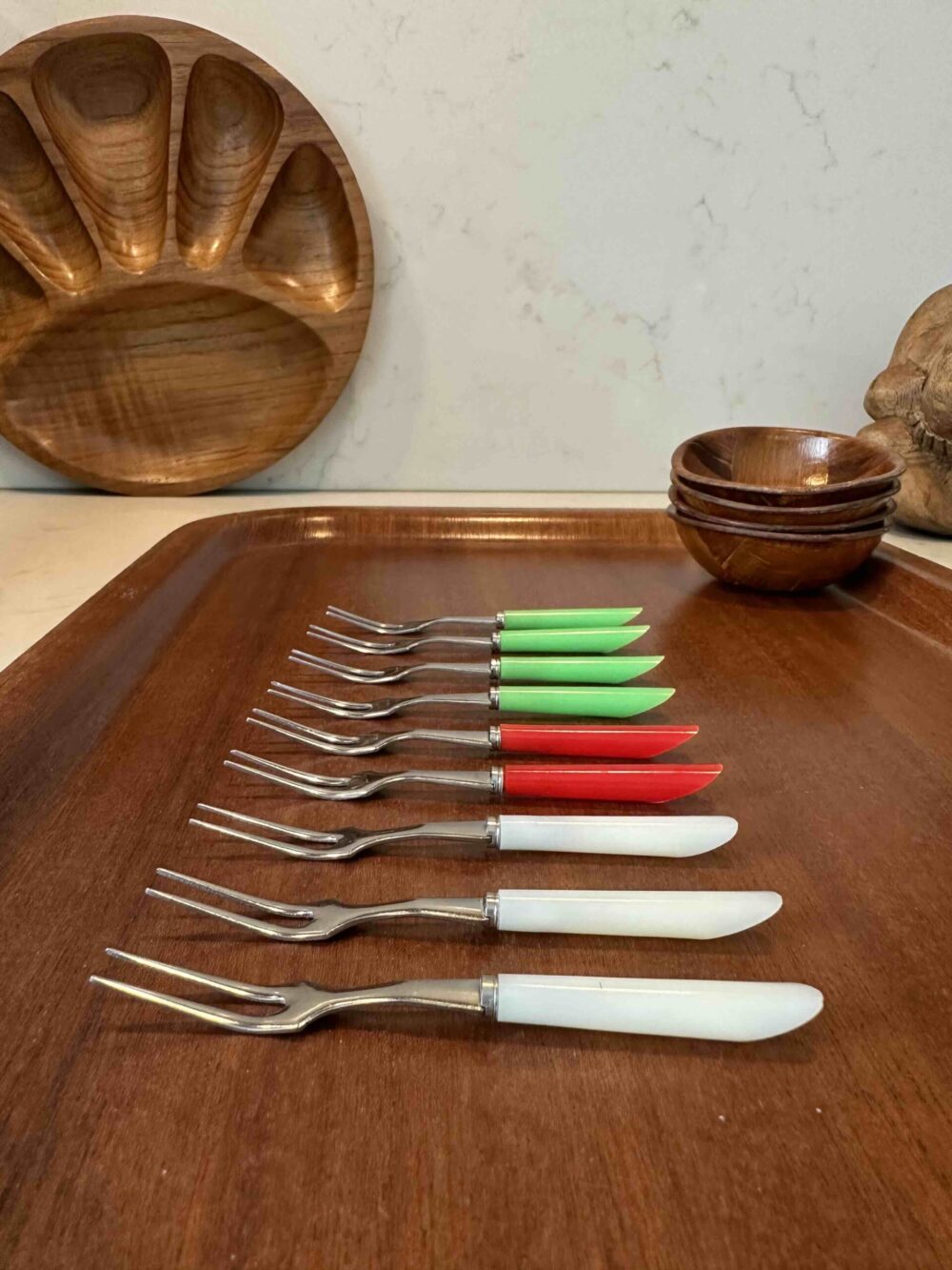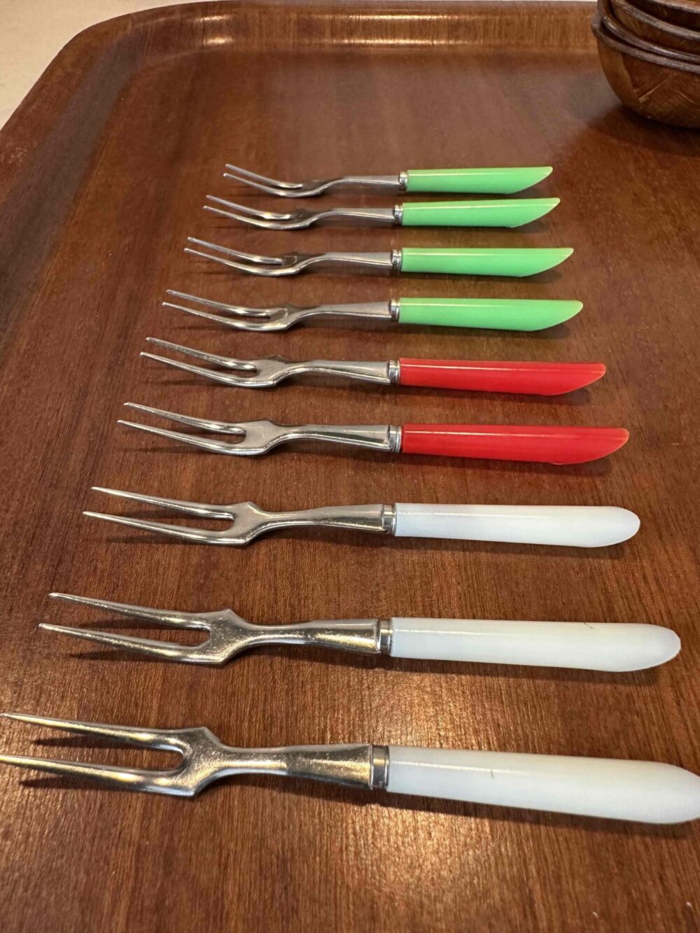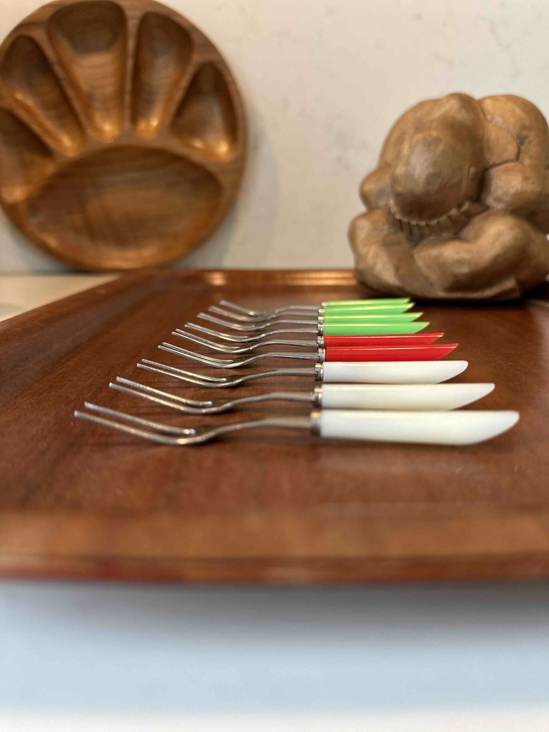 Superleuk voor bij de borrelplank of een retro feestje! Deze RVS vorkjes met kunststof handvat zijn niet alleen handig, maar ook een feestje om te zien.